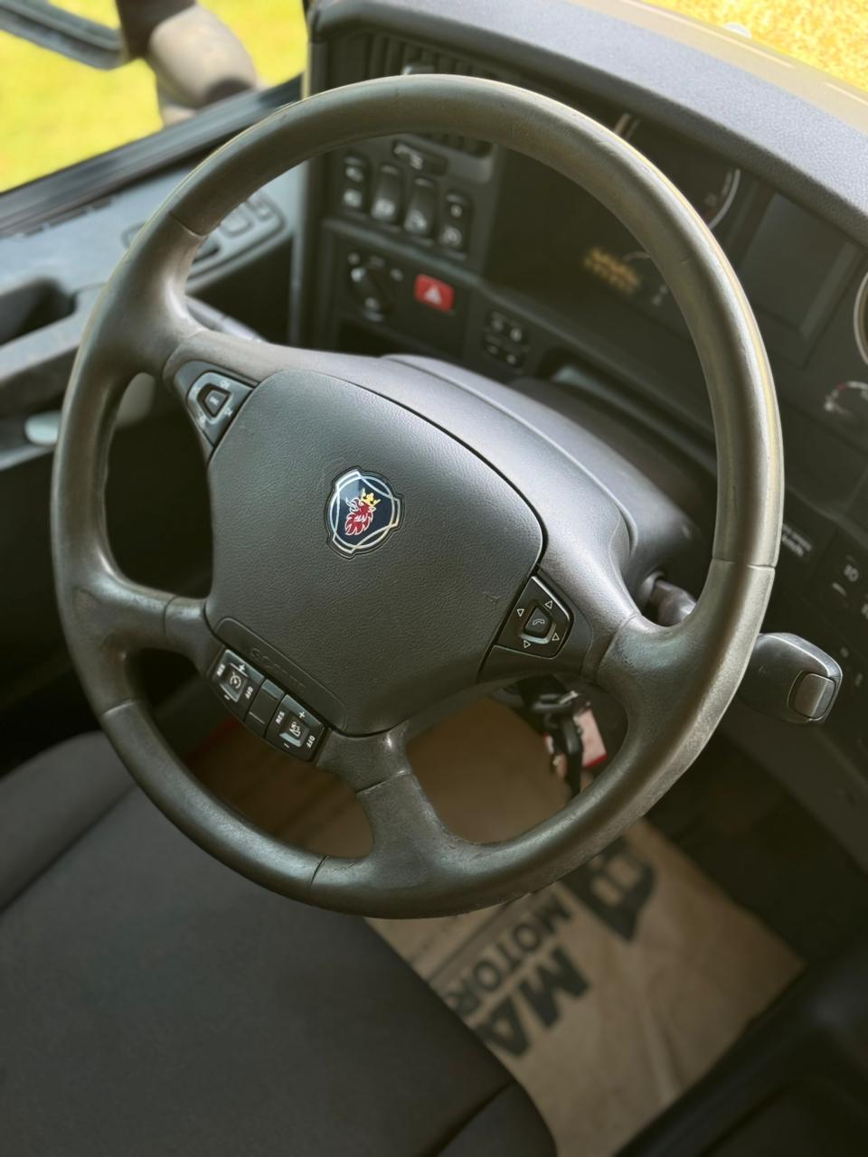Tracto R440 6×2 con cabina amplia y equipada: transmisión Opticruise, retarder, aire acondicionado, heladera y doble cama. Perfecto para viajes largos con máximo confort.